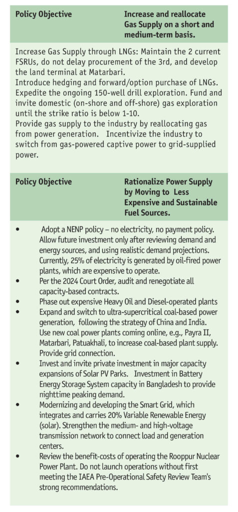 Energy and Power Challenge: Significant gas shortfall, expensive fuel use in power, outdated grid affecting industry and leading to long-term financial losses. A 25-30% daily gas shortfall, affecting both power generation and industry. The present gas supply is also unstable. RMG’s backward linkage and “Double Transformation” textiles are severely affected, with reportedly 10% of plants closing and factories operating at 25-30% utilization. Unplanned overcapacity with expensive fuel, causing huge losses of nearly 1% of GDP (partly financed by a special bond issue).