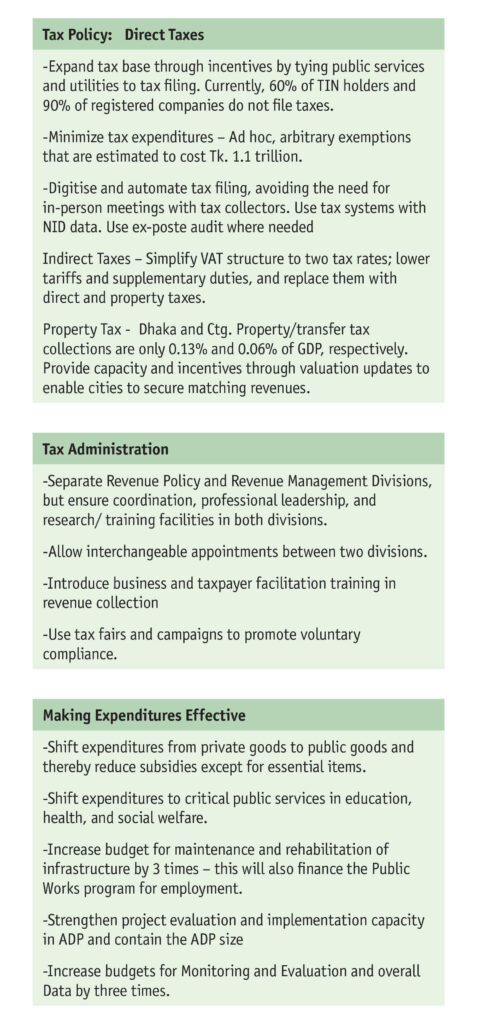 With no fiscal space, per capita public expenditures in real international dollars are one-third those of India and Vietnam. In this context, two policy goals are key. First, revenues must be efficiently raised; second, public expenditures must be well prioritized and effectively implemented.