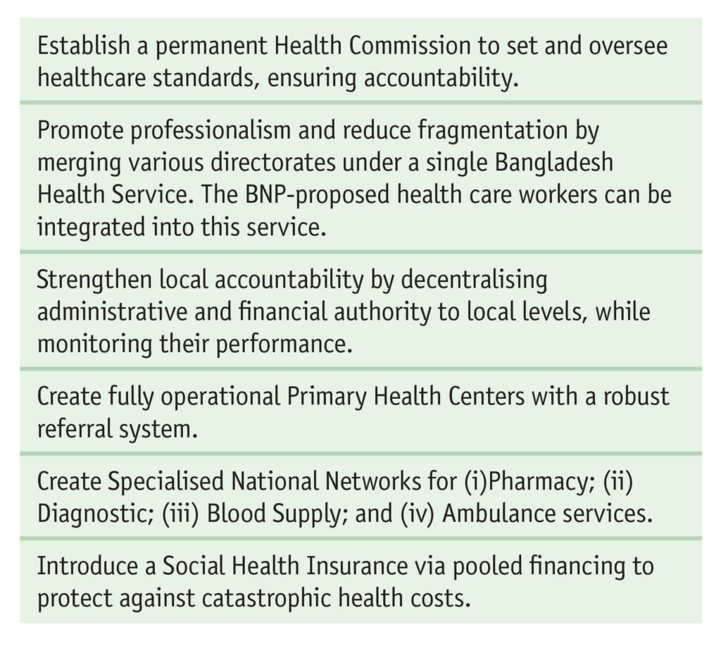 In the health sector, the reform commission has made sensible recommendations. Alongside budgetary increases to WHO levels, their management reform proposals include:
